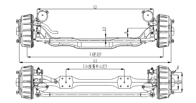 1.前軸為整體鍛造結構,采用加強設計,承載能力強; 2.輪距、板簧距可靈活調整;3.車輪輪輞定位方式可采用球面定位或止口定位